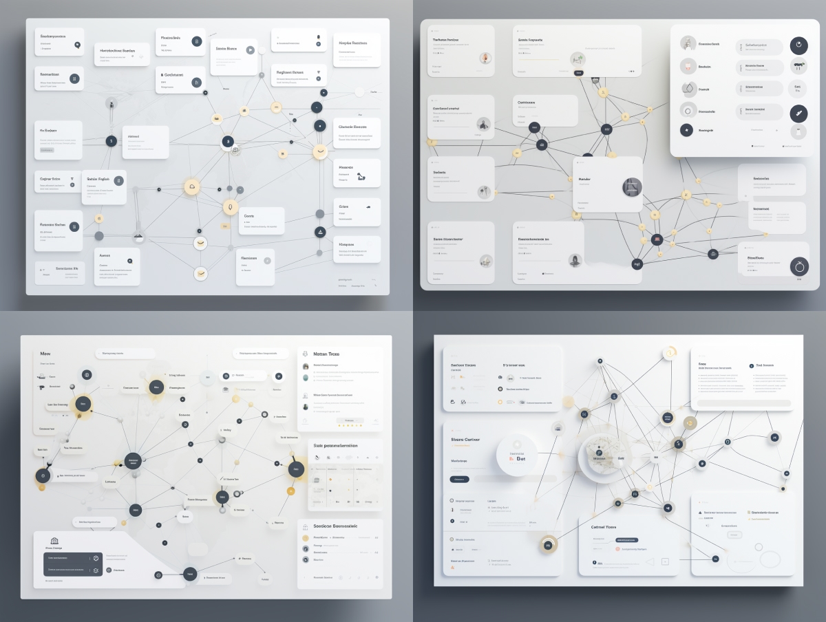 DiscordUI Design of [ Industry or Product ], [ Type of user Interface ][ Description of interface/ Descriptive keywords and items], [Include 1–3 styles], [ Color Palette ] High Resolution, --ar 4:3 --v 5.2I have worked on a few SaaS applications, what could Midjourney do here? A common theme in many of the tools I help design involve flow editors of some description. Let's start here with a few slightly different prompts.